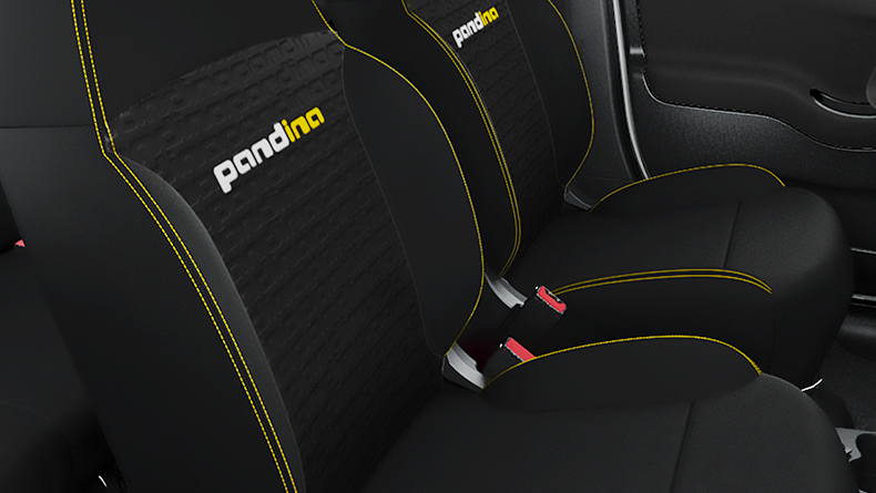 Be comfortably seated on the black fabric new seats with yellow double stitchings with the Pandina Monogram and yellow double stitichings.